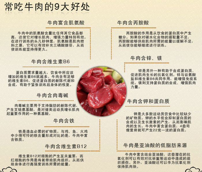 推薦理由:【1】、如今送健康是人人都愛(ài)的,而內(nèi)蒙古的牛肉干不僅味美還含有豐富的營(yíng)養(yǎng),牛肉味甘、性平、入脾、健胃。含有豐富的肌氨酸、維生素b6、維生素b12、丙氨酸、肉毒堿、蛋白質(zhì)、亞油酸、鋅、鎂、鉀、鐵、鈣等營(yíng)養(yǎng)成份,這些營(yíng)養(yǎng)成份,具有增強(qiáng)免疫力和促進(jìn)新陳代謝的功能,特別是對(duì)體力恢復(fù)和增強(qiáng)體質(zhì)有明顯療效。