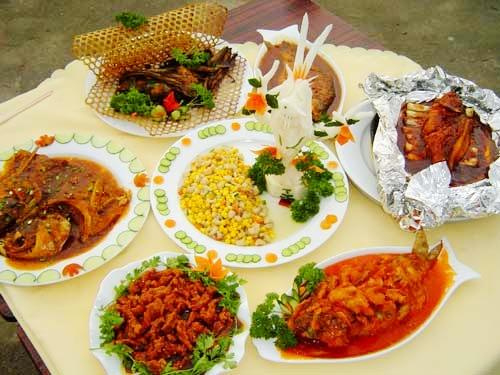 魚菜不但營養豐富,而且鮮嫩味美,百吃不厭。全魚宴有12、14、20、24道菜一桌的,甚至有上百道菜一桌的。主要名貴魚菜有鯉魚跳龍門 二龍戲珠、鯉魚三獻、家常熬鯽魚、梅花鯉魚、油浸鯉魚、鯉魚甩子、松鼠鯉魚、芙蓉荷花鯉魚、湖水煮魚、清蒸銀邊魚、葡萄魚、蔥花鯉魚、金獅鯉魚、普酥魚、蕃茄魚片、鴛鴦魚卷、荷包鯉魚、煎燜白魚、拌生蝦、拌生魚片等。