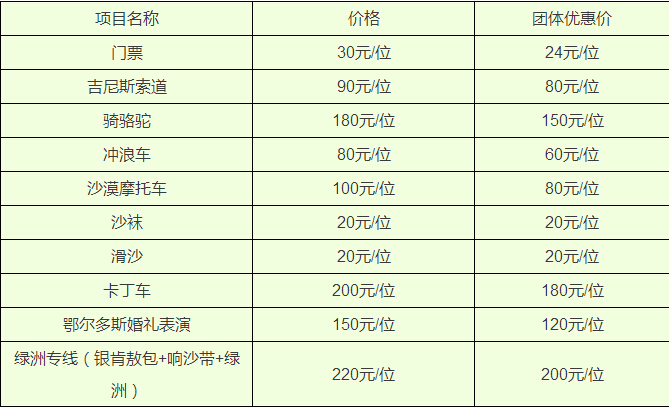 注:沙漠摩托車、卡丁車、綠洲專線可單項購買,豪華套A里含綠洲專線
