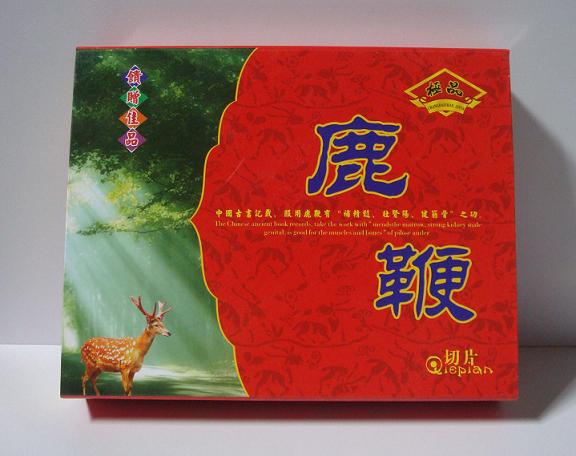 鹿鞭,中藥名。又名鹿腎,鹿沖。為鹿科動物梅花鹿或馬鹿雄性的外生殖器。宰鹿后,割取陰莖及睪丸,除凈殘肉及油脂,固定于木板上風(fēng)干即成。以粗大、油潤、無殘肉及油脂、無蟲蛀、干燥者為佳。《四川中藥志》:性溫,味咸辛,無毒;入肝、腎、膀胱三經(jīng);治陽痿,腎虛耳嗚,婦人子宮寒冷,久不受孕,慢性睪丸發(fā)炎。但素體陽盛者慎服。鹿鞭使用方便,可泡酒,制作藥膳,若是老鞭可以直接生吃。梅花鹿鞭,主產(chǎn)于吉林、遼寧、河北等地;馬鹿鞭,主產(chǎn)于黑龍江、吉林、內(nèi)蒙古等地。